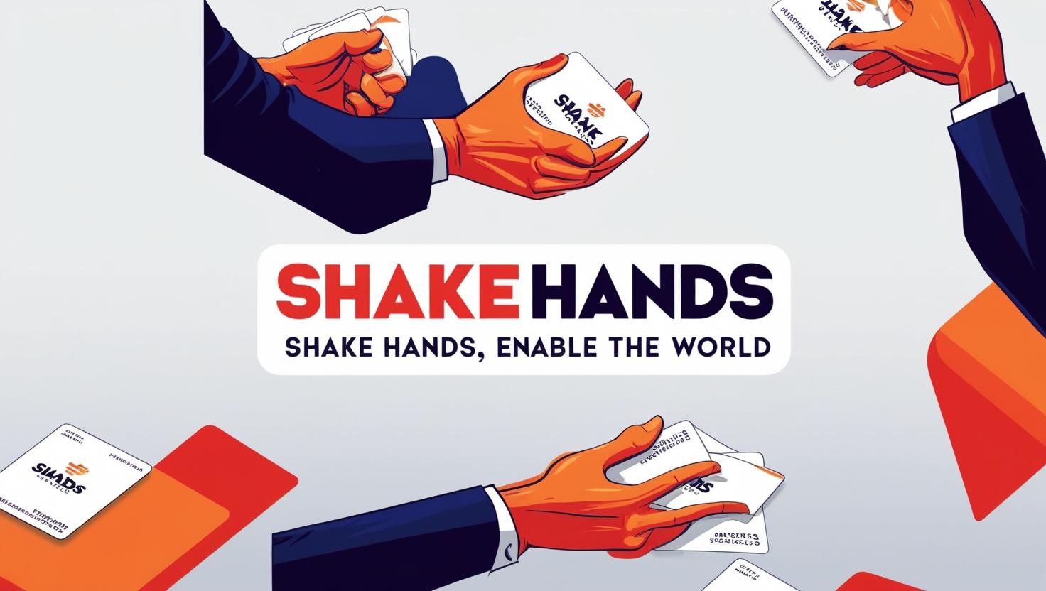 ビジネスカードゲームSHAKE HANDSのWebサイト用のサムネイル画像を作成したい。キャッチフレーズはShake Hands , Enable the World.で作成してほしい Post Share Post Share この記事のタイトルとURLをコピーする